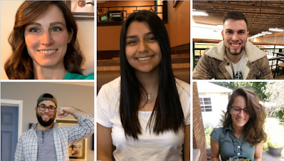 Sophomore biology major Rose Inchauregui (middle) and junior Biochemistry major Catherine Duselis (top left) collaborated on constructing conformation-specific reagents for developing glucose biosensors. Rose received funding from the LSAMP program supporting underrepresented minorities in STEM and Catherine received work-study support through the Cottrell Scholar's Award grant.